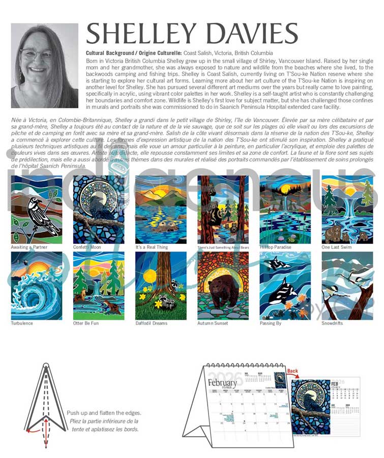 Our 12 month calendars are printed on FSC certified premium quality art paper, metal coil bound and individually packaged in a clear protective sleeve. With two calendar grid styles per month, these desk calendars make planning for the whole year easy! Calendars are 16.51 x 15.24 cm (6.5 x 6 inches) folded and are designed, printed and proudly made in Canada. Each month displays a unique authentic indigenous design. The artist biography is featured on the back of the calendar.